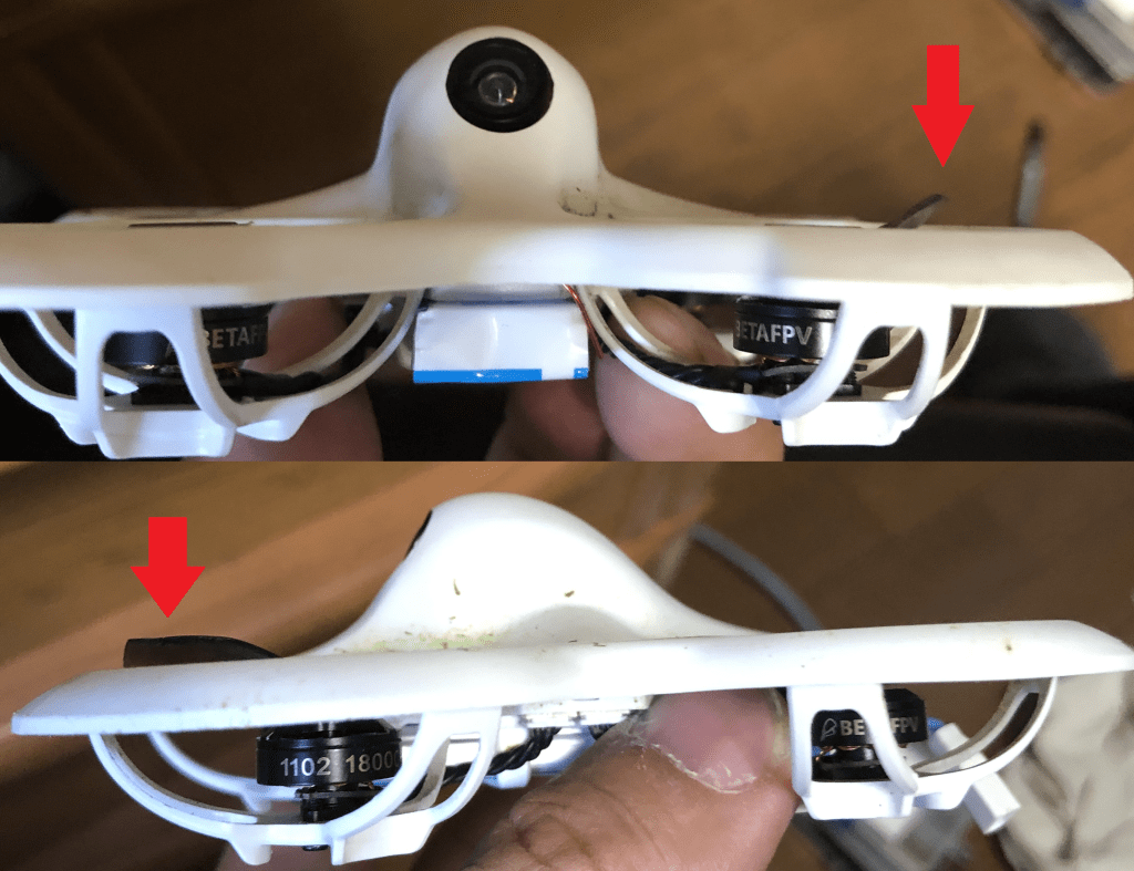 いざとなったら一番初期のVerに書き直せば元に戻るくらいの感覚で手を出して、OSDが映らなくなりセンサーの設定なども確認することができなくなりました。紫LED状態にはできるのでOSDメニューには入れている様子。